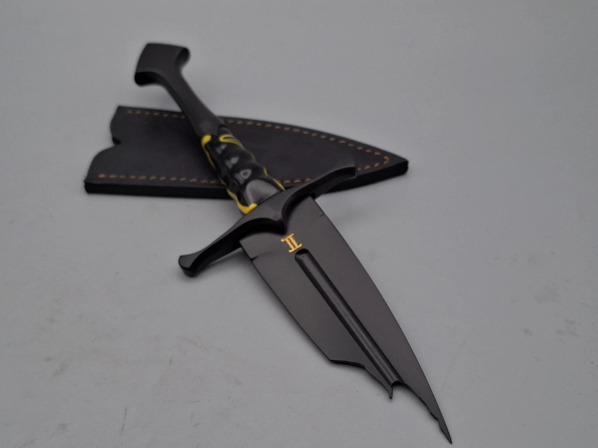 ‘Narsil broken sword’ Sgian Dubh with Scottish Buffalo horn hilt and 23.5kt gold inlay